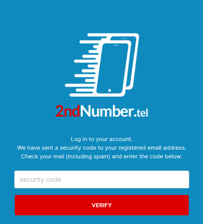 Your job now is to check the email address you gave us when you signed up, OR the PayPal email address of your PayPal account if you used PayPal to pay. Also, if you happened to update your email address via the "Profile" icon in the 2ndNumber web dashboard in the past, then the email will go there. - Enter the code (remember to check spam folders for the email) and you're done. The login will not ask for this code for the next 21 days on the device you are using, so the security email step is only done once every 21 days.