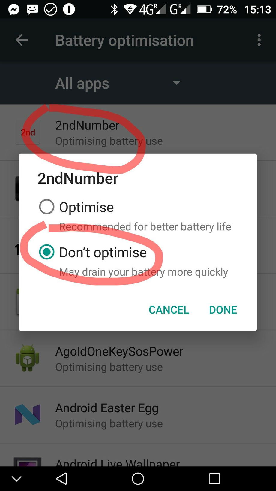 Aside from that, you should check battery management for the 2ndNumber app by going to :